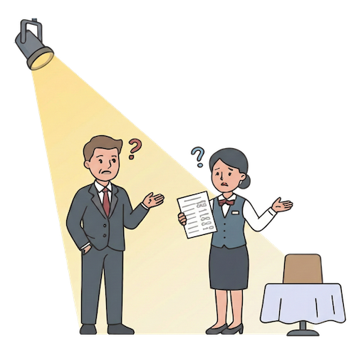重要嘉賓到場竟然無人知?因為名單混亂,導致 VIP 被冷落,甚至分錯枱,場面尷尬。